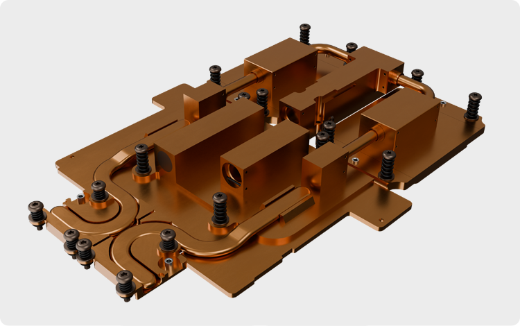 ARA's cold plates are compatible with a wide variety of coolants and can handle up to 2.5 kW per plate/up to 500W higher TDP when used together with our two-phase technology. Sintered-metal-enhanced flow-channel structures intensify boiling and phase-change heat transfer.