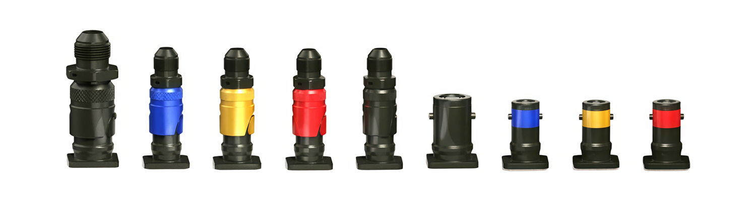 Available in sizes from DN15 to DN40 with lengths ranging 300-800 mm. Flow capacity 1-20 LPM per connector. Color-coded by fluid type, supplied in sets optimized for rack-level or system-wide deployments.